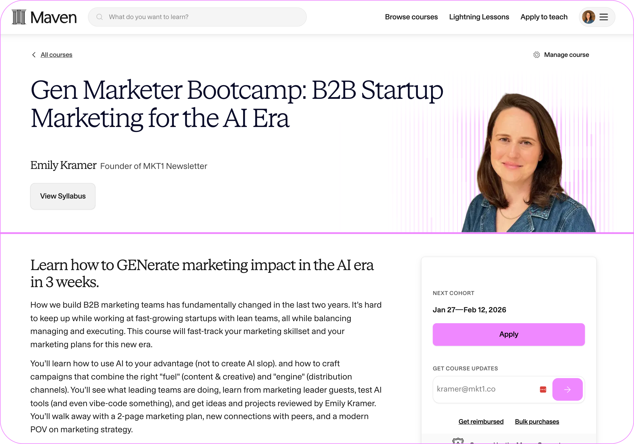 If you loved the Summit and/or want an intensive of becoming a full-stack marketer for the AI era, Iâm returning to teaching cohort-based-courses on Maven and my new course is open for applications.