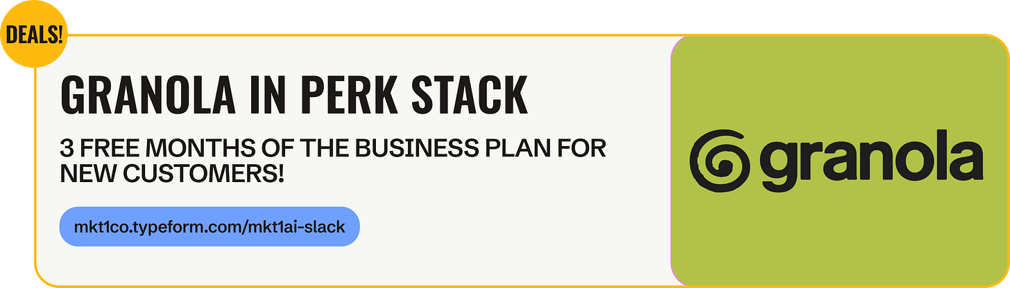Brief intermission: Don’t hold another marketing meeting without Granola. It’s now in the MKT1 Perk Stack, which totals $40K+ in exclusive discounts for annual paid subscribers, including Framer, Typeform, Primer, PhantomBuster, and Storylane.