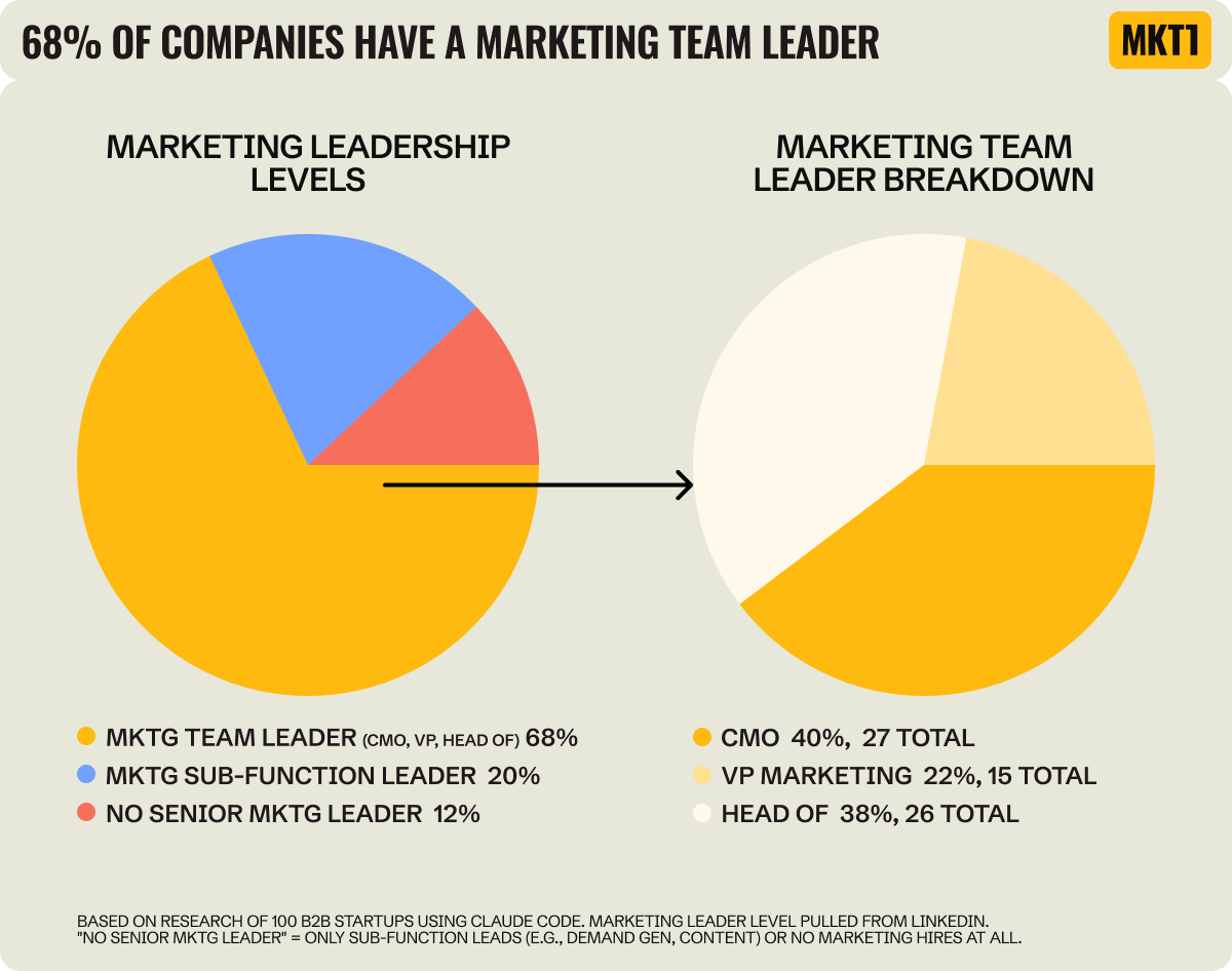 ➜ 68% of companies have someone leading all of marketing, but with a mix of Head of, VP, and CMO titles