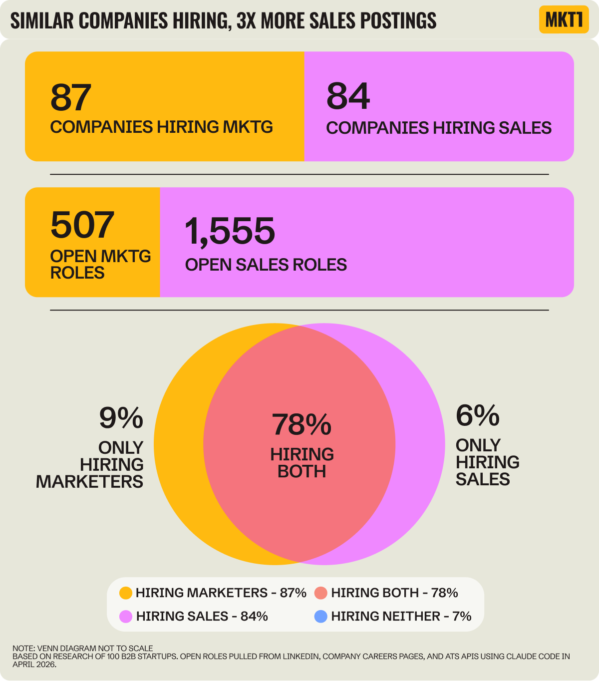 87 companies are hiring marketing, 84 are hiring sales, 7 aren’t hiring for either.