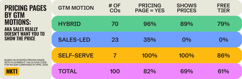 But also, sales-led companies: We’re going to ask an LLM for your pricing anyway—it might as well be available and accurate on your site. I wrote about this forever ago and can’t believe this is still a debate.