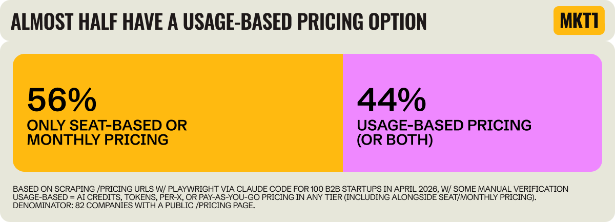 28 companies (34% of companies with a pricing pages) have only usage-based pricing.