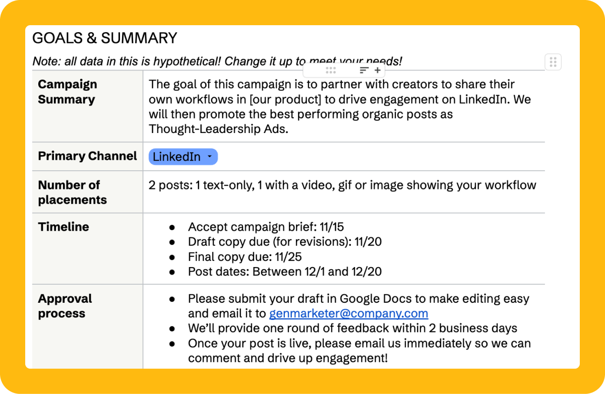 Brief for influencer campaigns, walkthrough video on downloading leads and comments from LinkedIn posts, walkthrough video on setting up Thought Leader Ads on Linkedin